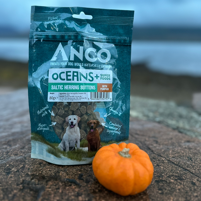 Made with sustainably sourced herring from the Baltic Sea and gently air-dried to lock in all that omega-rich goodness, these treats help boost brain function, keep coats shiny, and support a strong immune system. The addition of pumpkin soothes sensitive tummies, supports healthy digestion, and provides a boost of vitamins and minerals like Vitamin A and Potassium for eye, muscle, and heart health.
