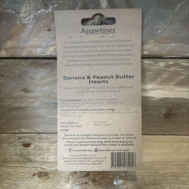 Almost like a pudding in biscuit form — these treats smell so good, you might just be tempted to try one yourself! Perfect for rewarding your pup when they’ve been extra good, they’re baked with potassium-rich banana and xylitol-free, protein-packed peanut butter for a deliciously wholesome bite. Rolled oat flour adds a boost of fibre (great for sensitive tummies), while a hint of ground ginger makes them extra special.