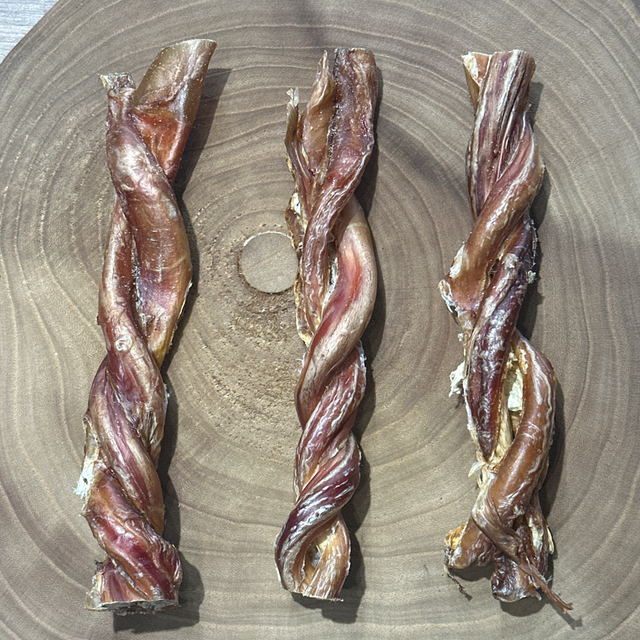 Our Twisted Pizzles (20–25cm) are a real treat with a twist! 🐕 Naturally air-dried to perfection, they make a long-lasting chew that keeps dogs busy and teeth clean — the perfect natural alternative to dental sticks. Simple, satisfying, and oh-so chewable!